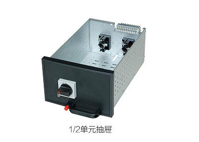 該柜型抽出式功能單元外形尺寸標準化程度高,高度尺寸采用25模數值,可組裝成高度為150、200、300、400、60O等模數值內的單元抽屜。1/2單元抽屜配套使用電路分配轉接器,可以制作高度為150、200的小單元抽屜。